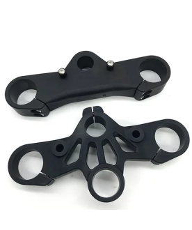 Ces Tés de fourche usiné en aluminium sont conçus pour remplacer ceux d'origine de la Royal Enfield 650. Ce produit vous permettra d'aléger le train avant de votre moto de plus de 2kg au total tout en assurant une rigidité exemplaire.
